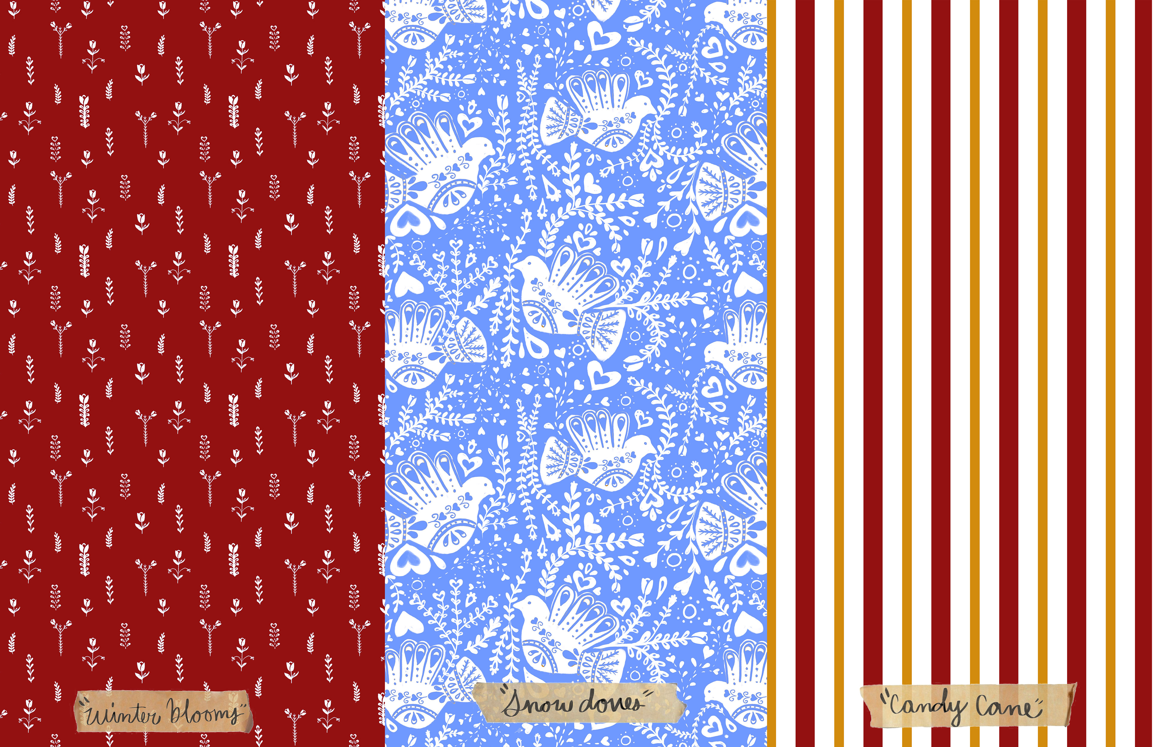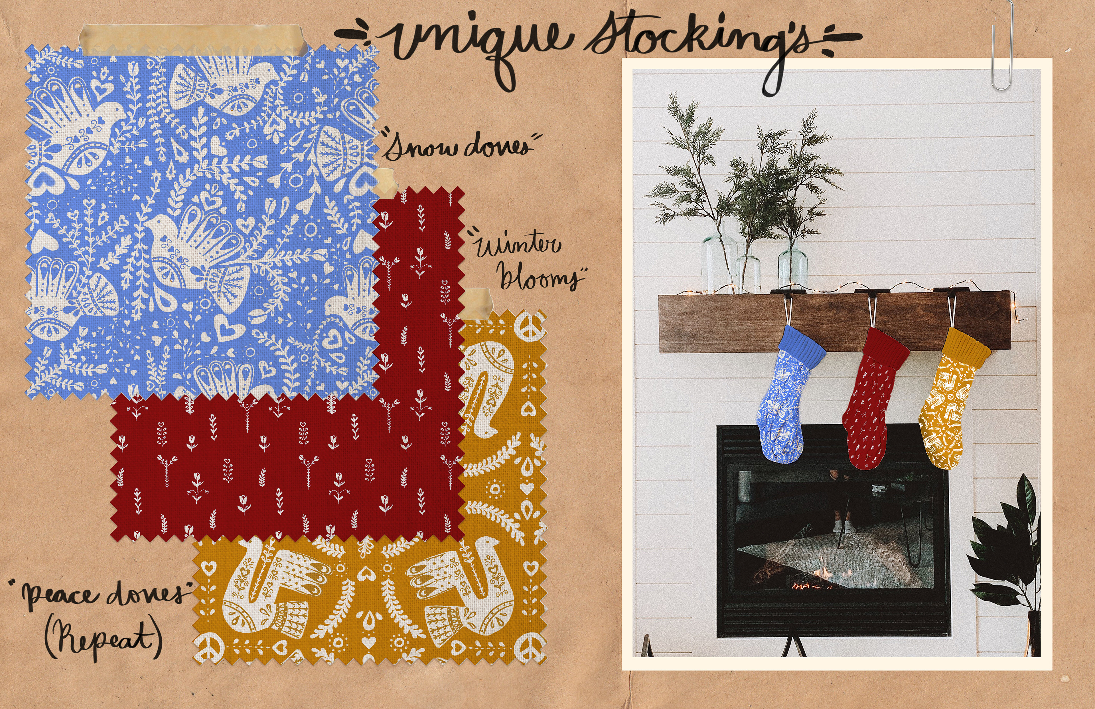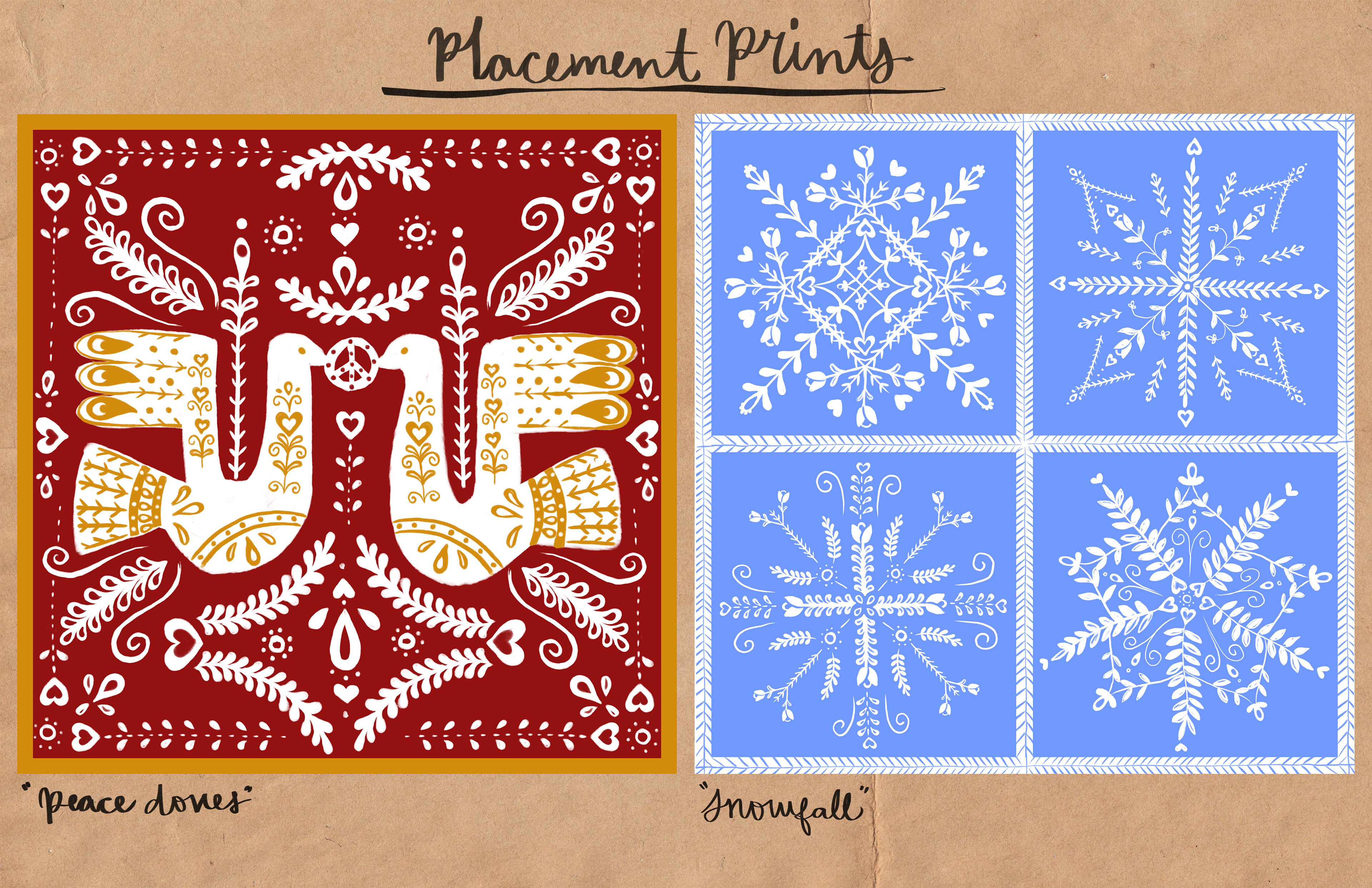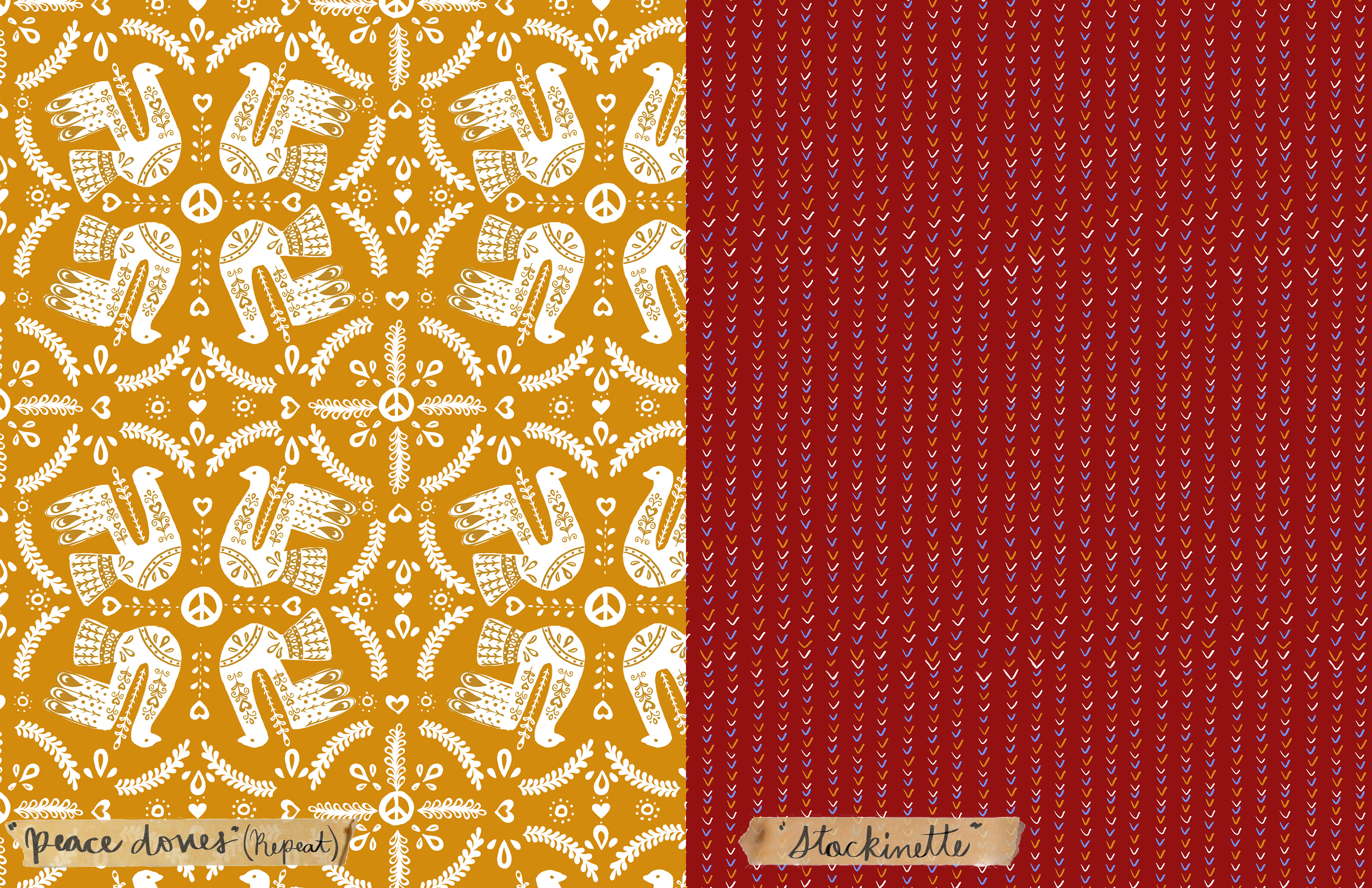 A warm and rich print collection inspired by motifs used in Scandinavian folk art. The patterns are designed to make a space feel cozy and reminiscent of sitting by the fireplace during a snow storm.